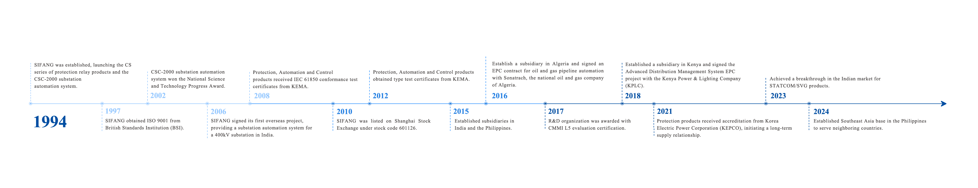 In international market, SIFANG has established subsidiaries and localized teams in countries such as India, the Philippines, Kenya, and Algeria, providing integrated solutions and services to energy and power companies, large public utilities, and industrial enterprises. Currently, SIFANG's products are distributed globally, with exports to over 90 countries across Southeast Asia, Central Asia, Africa, the Americas, and Europe. More than 2 million intelligent electronic devices (IEDs) and tens of thousands of automation systems are operating safely and reliably in domestic and international markets.